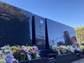 慰霊碑に故人の名前を掘ってくれる。生前は朱文字で没後に色抜きで黒文字に変わる。駐車場のすぐ隣りでほぼ歩かない。