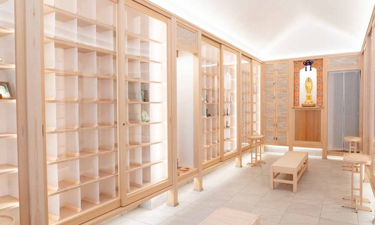納骨堂あかりを見学させていただきましたが、骨壷を包む布の色合いが綺麗で、全体的に温かみのある、落ちつく施設だと感じた。