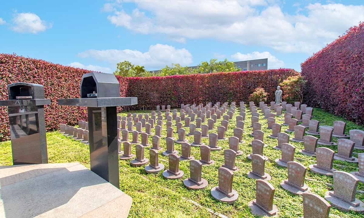 綺麗に管理された陽の光が差し込む落ち着いた墓域で、