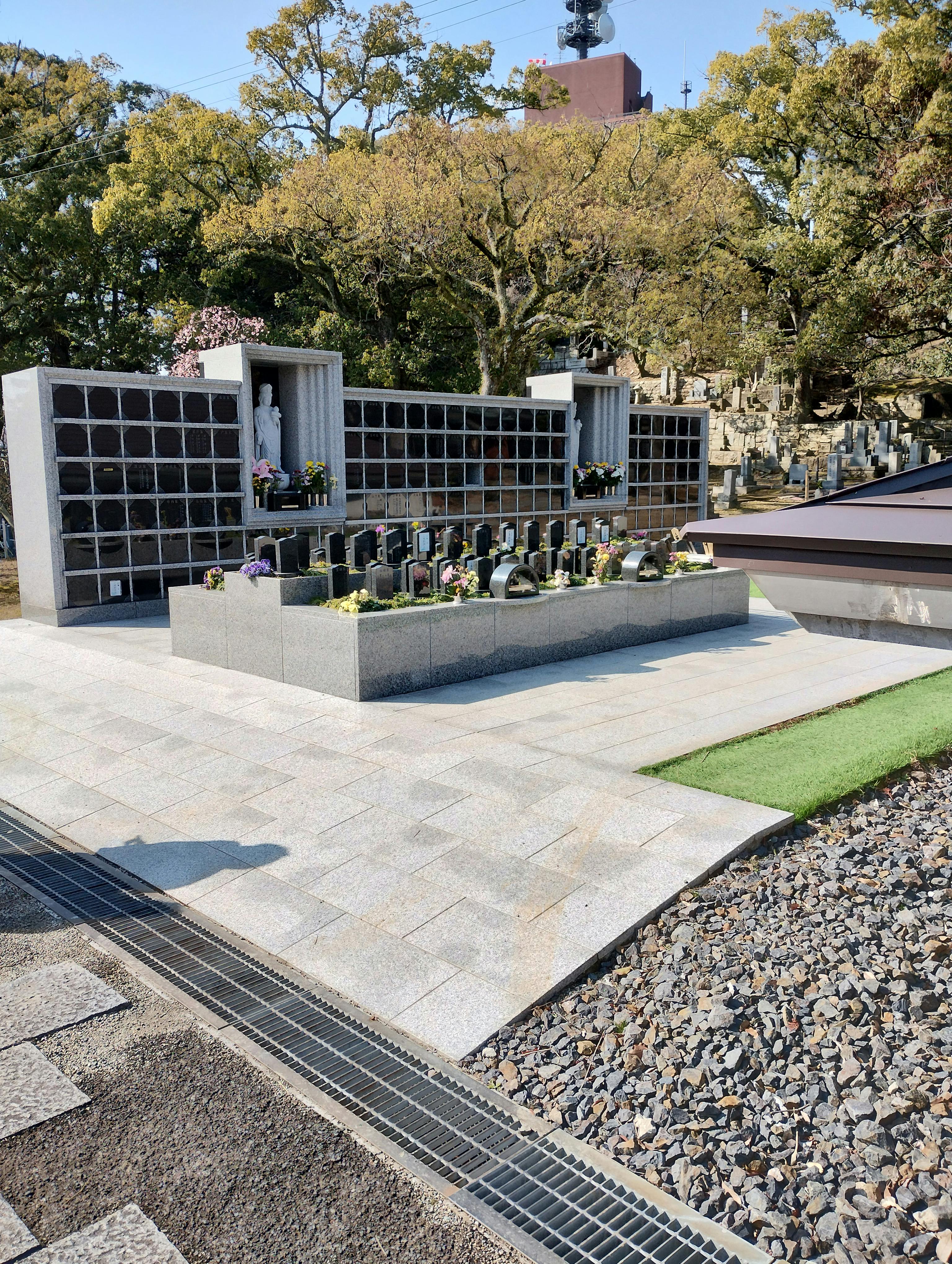 新しく設置された樹木葬墓でしたので、とても綺麗でした。見学は雨の日でしたので、屋根がない部分が多く傘は必須ですが、晴れた日の日当たりはよさそうでした。